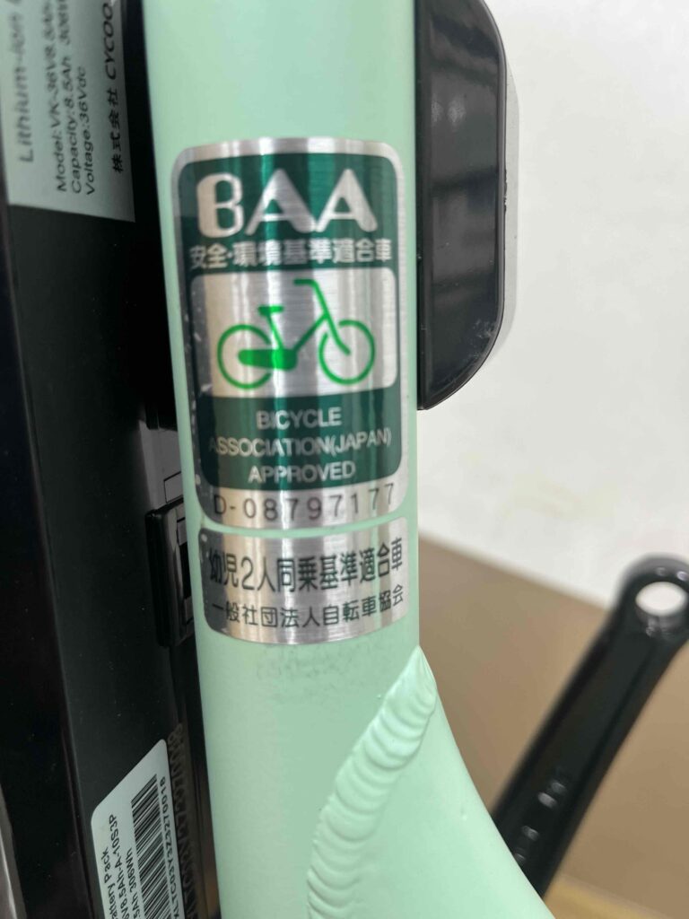 自転車協会が定めた安全基準です。フレームの強度やブレーキの性能、操作性など様々な要件があり、お子さま2人同乗のための安全性を確保しています。