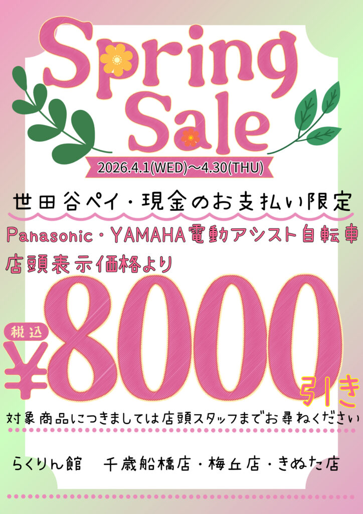 らくりん館では4月1日(水)~4月30日(木)までの期間、セールを開催中です。